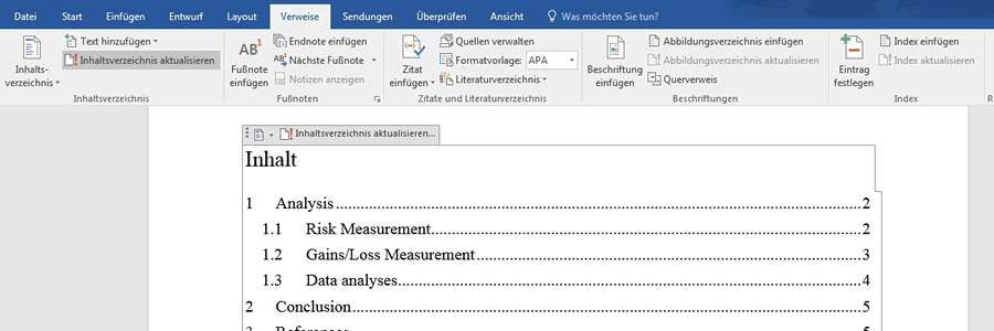 3. Inhaltsverzeichnis aktualisieren