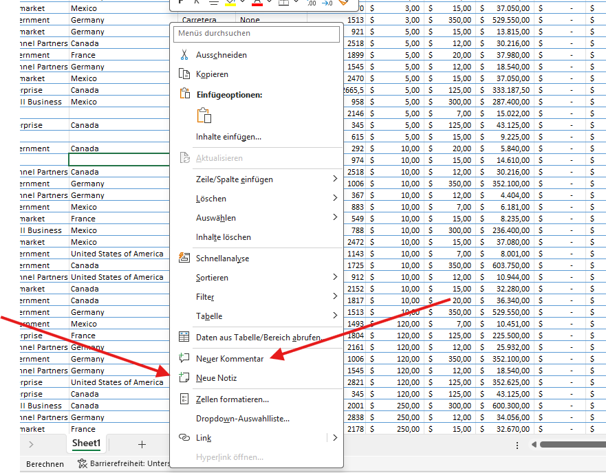 • Rechtsklick auf eine Zelle → „Neuer Kommentar“