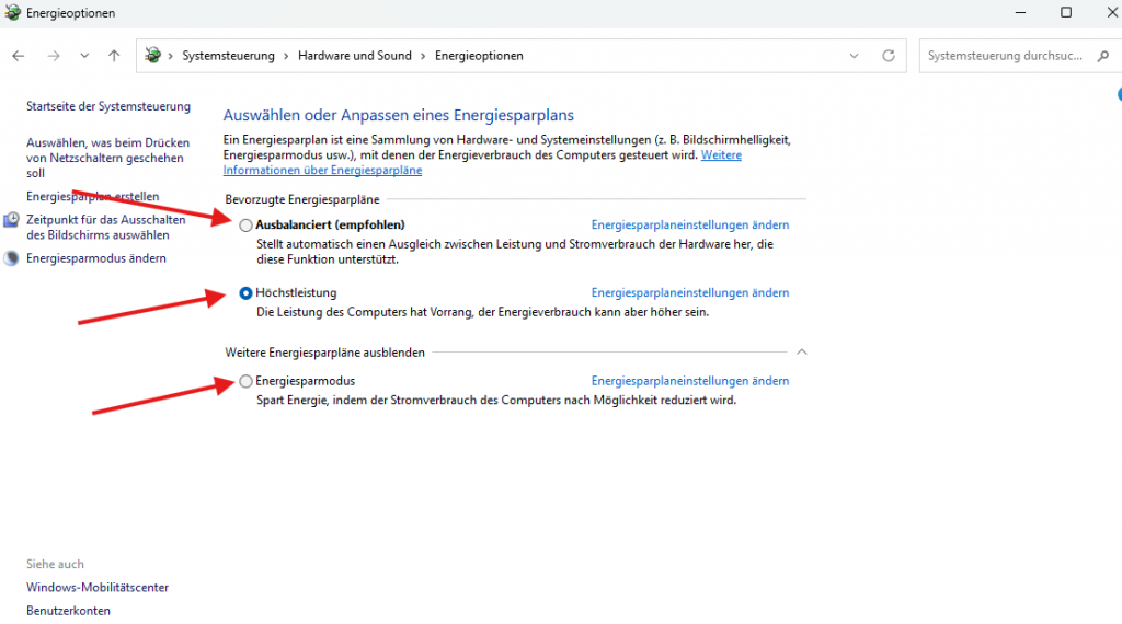 Ja, auf manchen Systemen gibt es „Ultimative Leistung“, aber das ist eher für High-End-PCs gedacht.