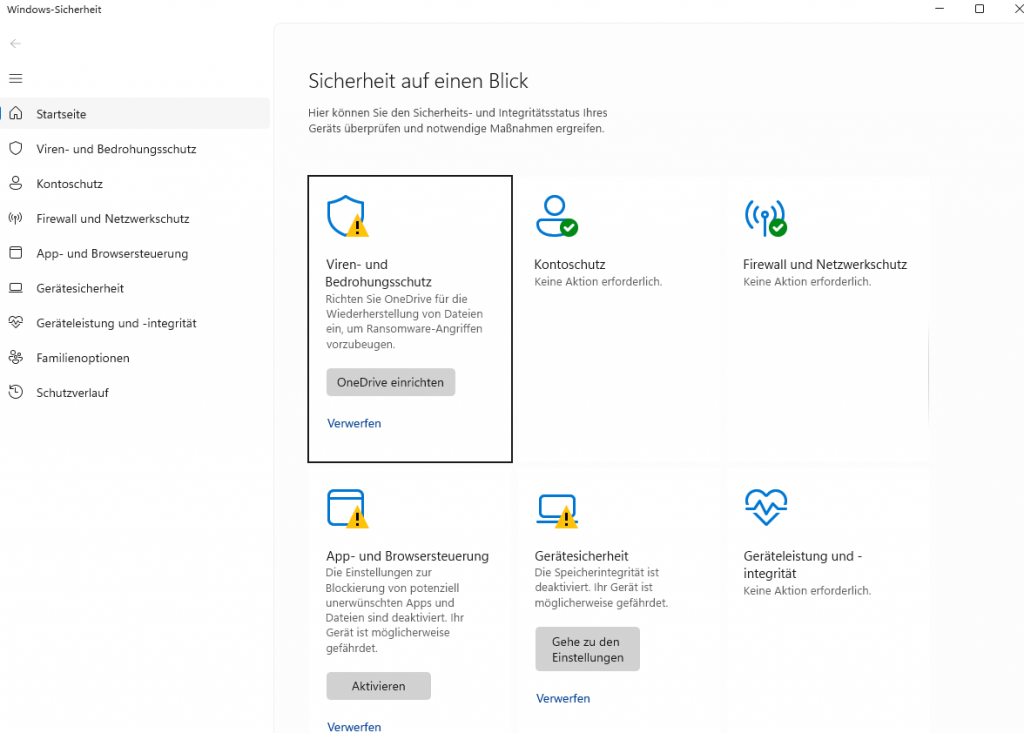 - Viren- & Bedrohungsschutz → sollte aktiv sein